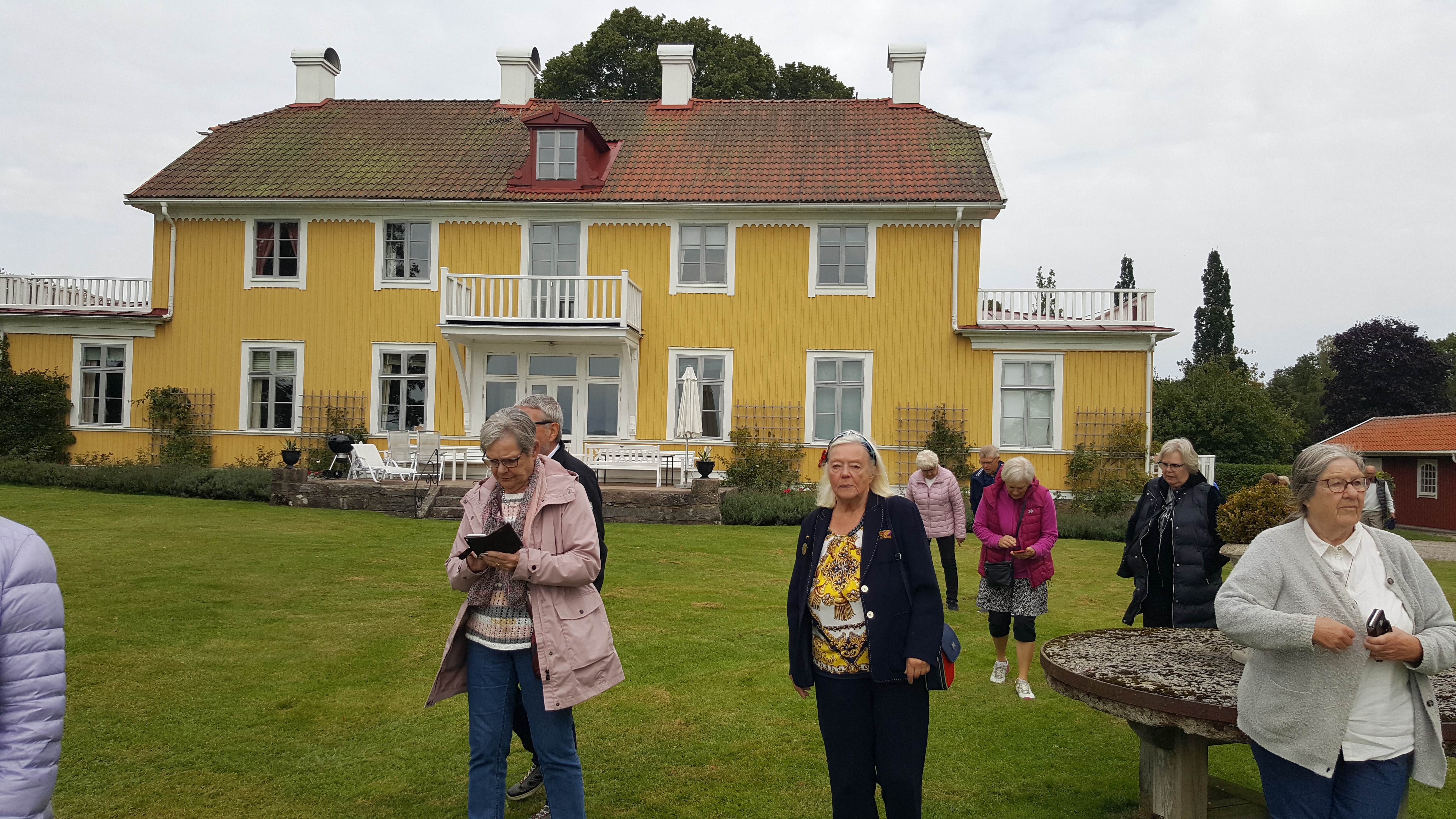 Vår skickliga guide Anita berättade både om bygdens historia samt om Birgit Th. Sparres fantastiska liv som innehöll både uppgång och fall. Lunchen intogs på Åsundsholm där Birgit skrev de flesta av sina böcker. Vi fick en guidning av nuvarande ägare Barnekow på Högagärde, som ligger vackert vid Åsunden. Vår busschaufför Susanne från Bengts Resor som planerat vår intressanta resa fick ibland skickligt styra bussen på smala, krokiga alléer i det vackra landskapet.
