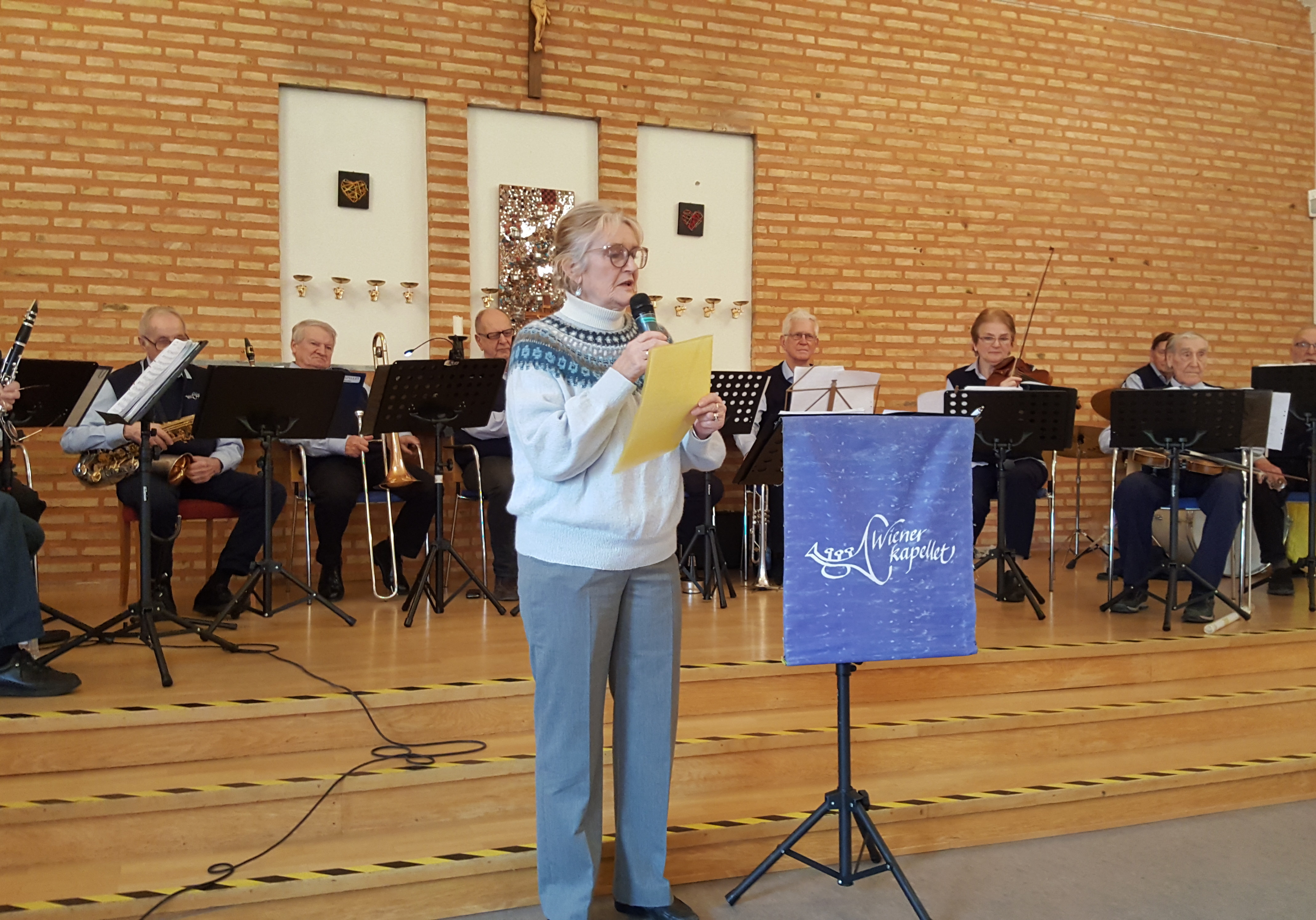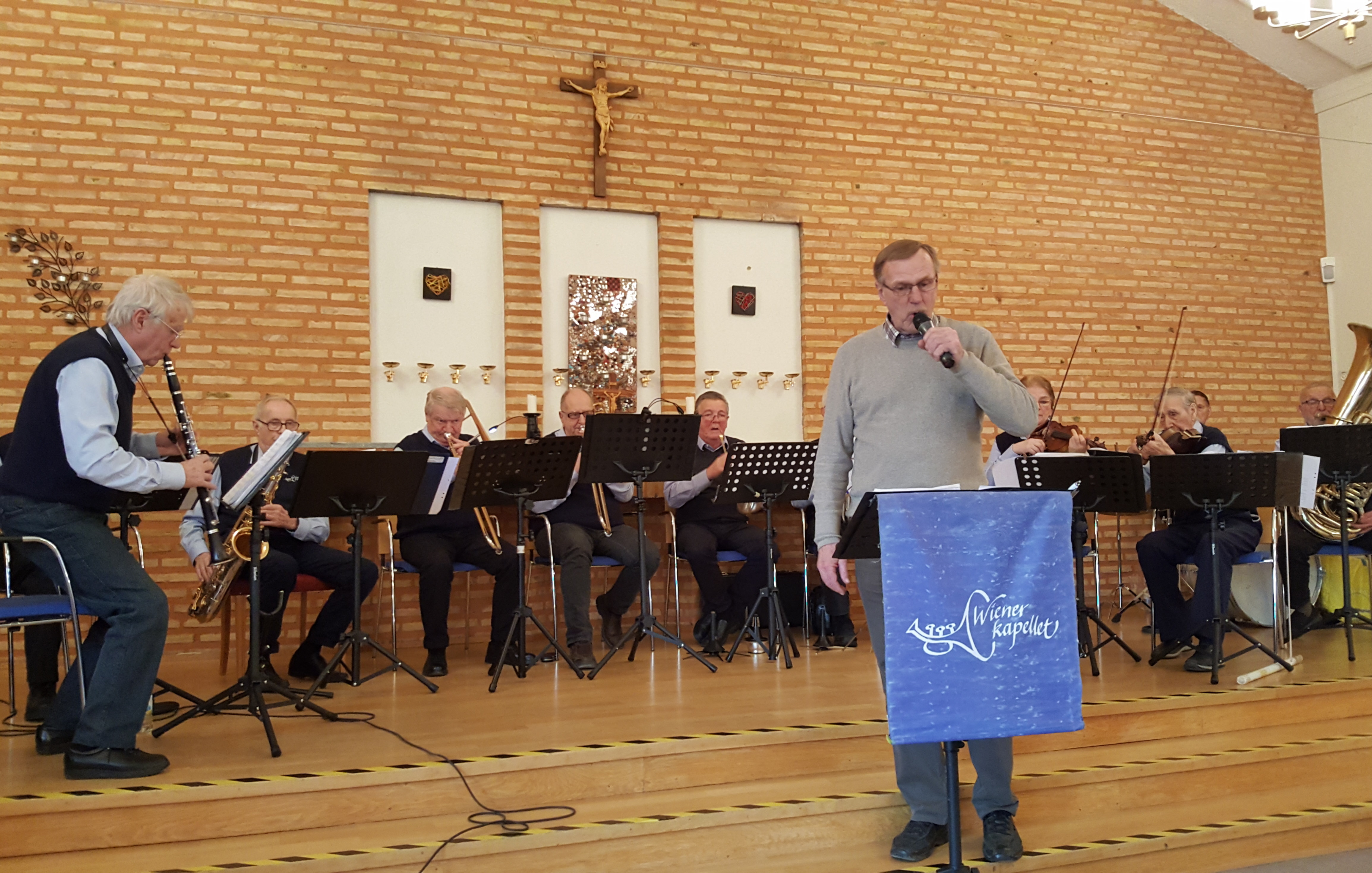 Orkestern spelar musik man känner igen, alltifrån smäktande wienervalser och marscher till nostalgisk 40-talsmusik, men även nyare musik finns på repertoaren. Första stycket var "Wien bleibt Wien," äkta Schrammelmusik, som vi alla kunde stampa takten till. Solister denna dag var Lars Forsberg och Hans Olofsson. Mellan musiknumren fick vi även lyssna till en och annan rolig historia som Lars berättade. Efter ett extranummer följde en lång, varm applåd som visade på allas vår uppskattning av programmet.