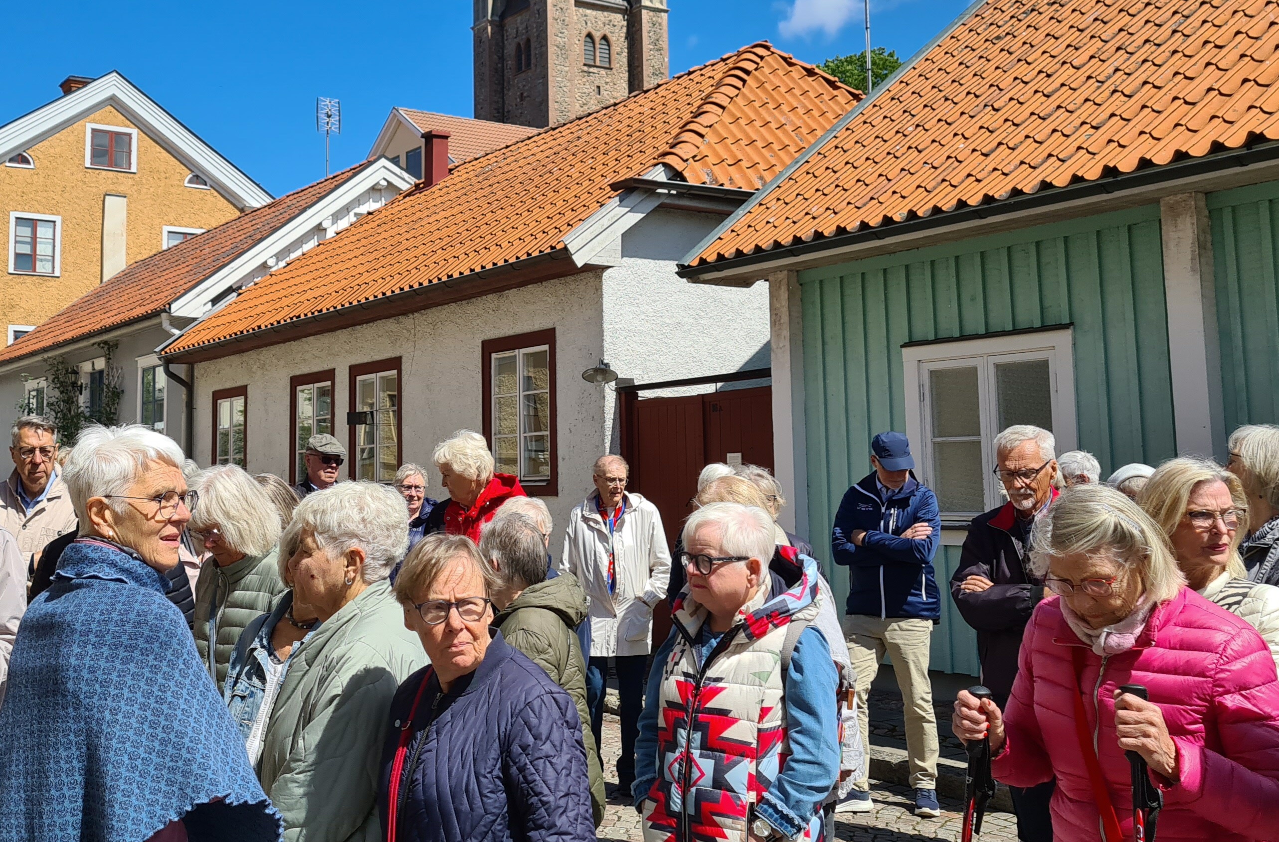 Efter fm-fika i naturen bar det av till Mariestad och Domkyrkan. Där fick vi en mycket kunnig guide som berättade om vår svenska historia och de olika religionerna vi haft alltifrån Ansgar och fram till idag. Och vilken stor påverkan Gustav Vasa hade på kyrkan och hela landets utveckling. Mariestad grundades år 1583 av Hertig Karl, som var son till Gustav Vasa och senare blev kung Karl IX. Därefter blev det en rundvandring i Gamla Stan, med sina kullerstensgator och vackra trähus och som är en av landets bäst bevarade stadskärnor. Trots två stora stadsbränder har ändå mycket bevarats till glädje för eftervärlden.