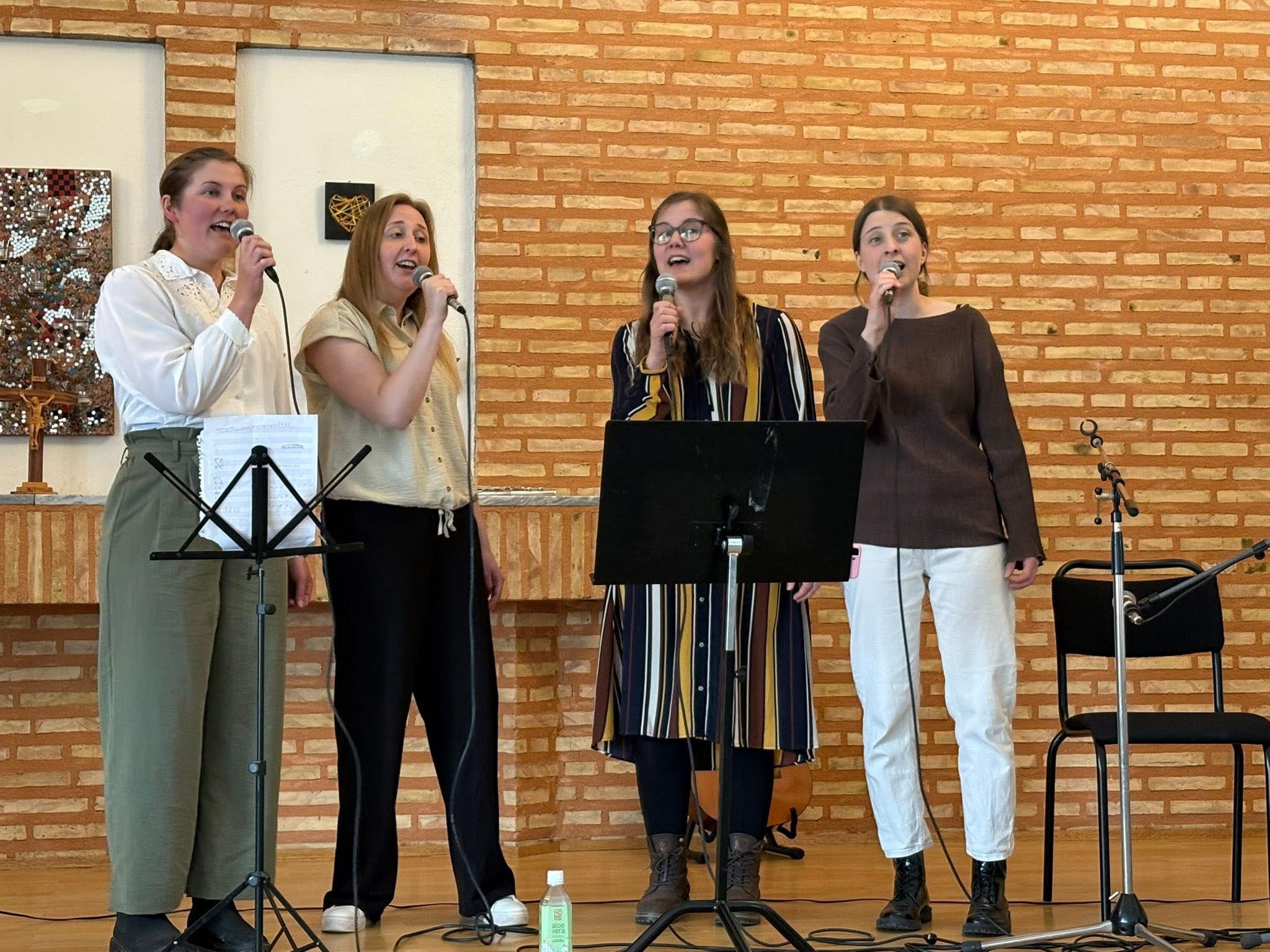 Som inledning fick vi lyssna på gruppen Porla. Det är fyra flickor från Hjo som sjungit tillsammans sedan högstadiet. De sjunger a capella och i många olika stämmor. Dansanta folkvisor och välkända, omtyckta vårsånger lockade fram många leenden bland publiken nu när vitsipporna börjar blomma i Hjoåns dalgång.