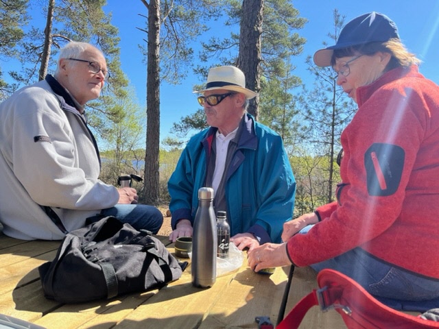 Göken ropade ömsom från väster, ömsom från öster, ansåg gruppen. Fjärilarna av alla möjliga kulörer flög runt i blåbärssnåret, porsen och klockljungen. Vädret var optimalt och picknicken vid stranden gav en försmak av sommaren.
