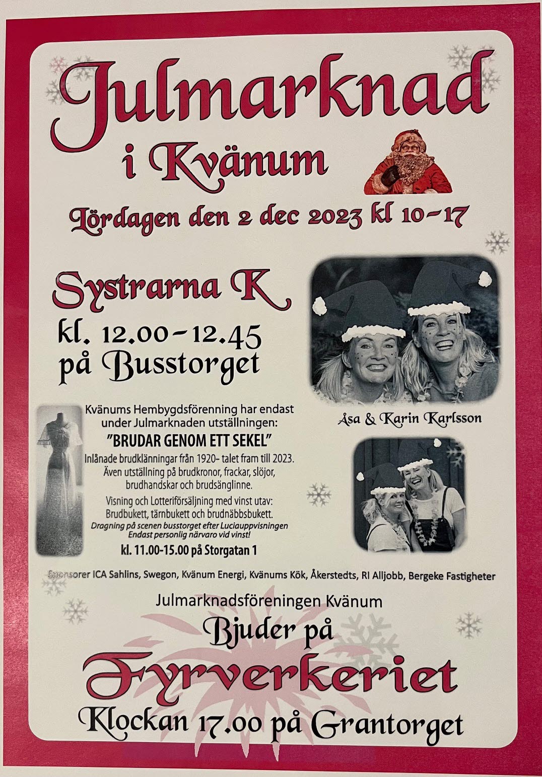 Julmarknad i Kvänum, lördag 2 dec. kl. 10 - 17.