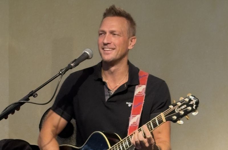 Efter en trevlig kaffepaus var det dags för musikunderhållning med Henrik Strömberg, som många känner igen från Scotts orkester. Henrik bjöd på glada och medryckande låtar som ”Corina Corina”, ”Jag ringer på fredag” och ”Dagny”. Stämningen i lokalen steg snabbt och publiken sjöng med i refrängerna med stor entusiasm. Musikstunden avslutades stämningsfullt med Lasse Berghagens klassiker ”Sträck ut din hand”. Gunilla tackade Henrik för en riktigt härlig musikupplevelse.