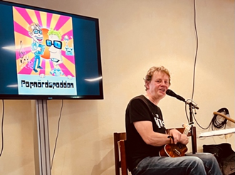 Ulf hade sin lilla ukulele med sig och är ”specialist” på tio-i-topp-