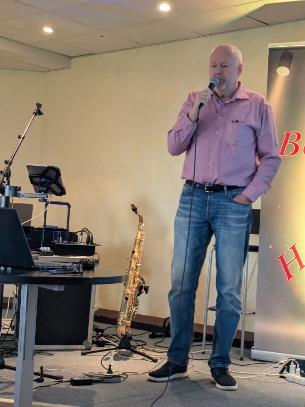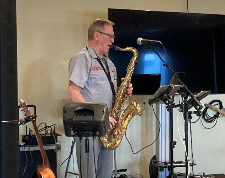 Efter en trevlig kaffepaus följde musikunderhållning med Bengt Hardy, som sjöng och spelade både gitarr och saxofon. Publiken uppskattade de välkända, dansanta melodierna och många sjöng med. Gunilla tackade Bengt för en riktigt härlig musikstund.