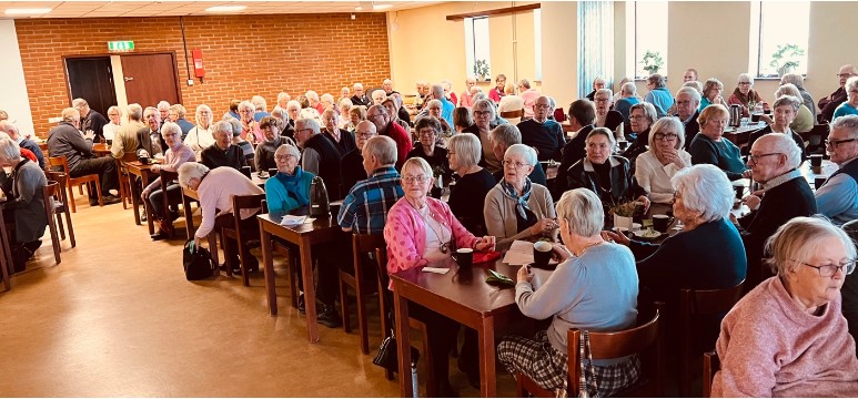 Måndag 3 mars samlades 160 SPF:are för månadsträff i Pingstkyrkans källarlokal "Arken", som blev fullsatt.