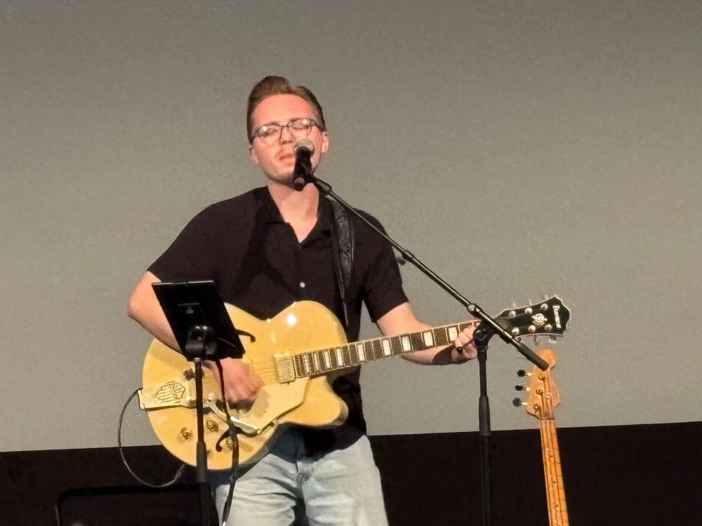 Henrik Widegren och en del av publiken. (Bild Mariestadstidningen)