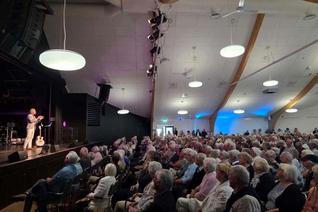 I Jubileumsteatern var det näst intill fullsatt när Henrik Widegren, läkare och specialist inom öron-, näs- och halssjukdomar samt foniatri, höll sin föreläsning ”Skratt – inget man skojar bort”. På ett både underhållande och tänkvärt sätt visade han hur humor, glädje och social gemenskap kan påverka kroppen positivt. Även om han konstaterade att vetenskapen ännu inte bevisat att skratt förlänger livet, var det uppenbart att publiken lämnade föreläsningen gladare och mer upprymd – inte minst tack vare de inslag av sång och musik som blandades in i föredraget.