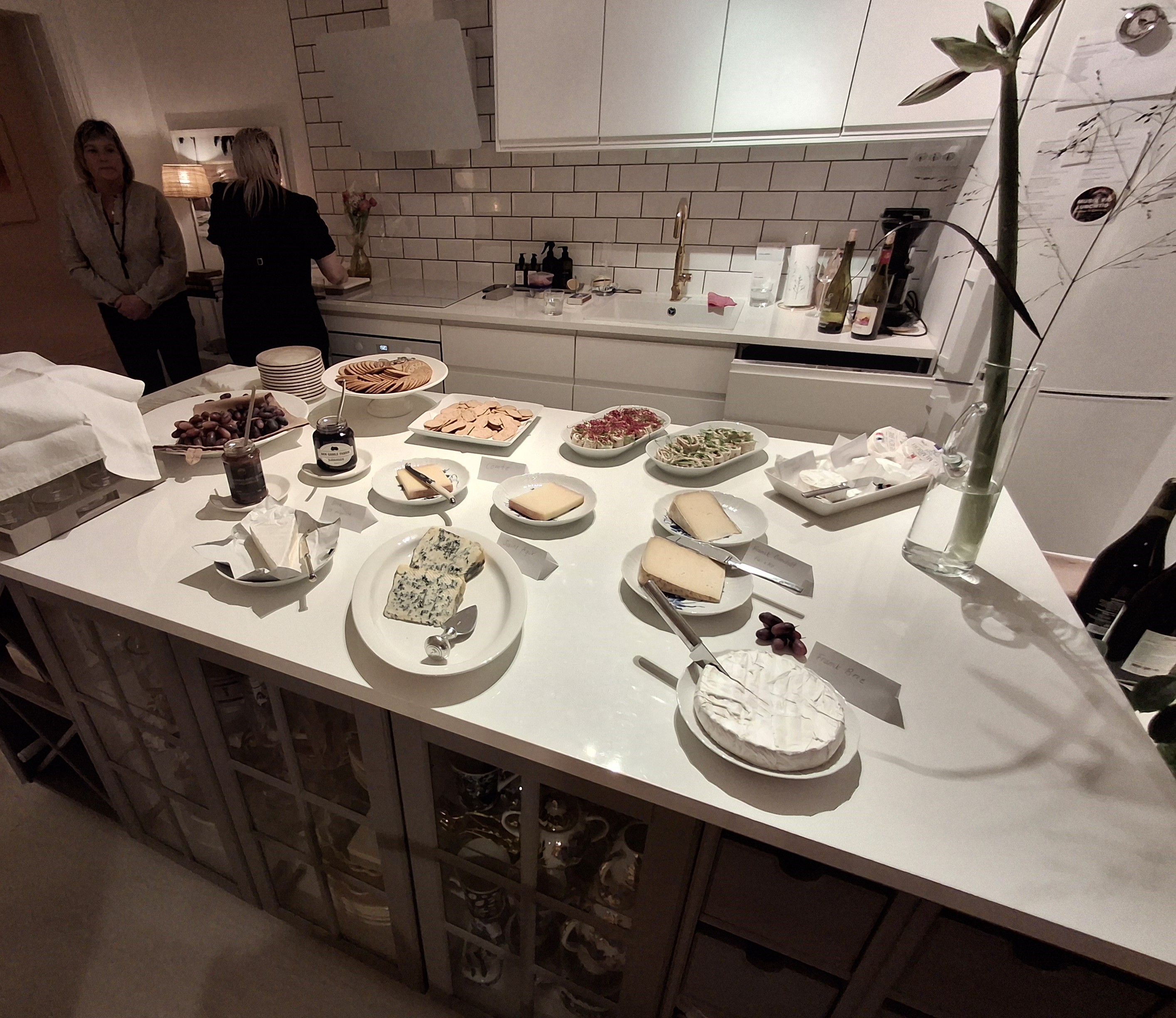Efter provningen hade Tuija dukat upp smakrik buffé à la Frankrike, av ostar, kex och tunnbrödssnittar med smarrig fyllning, att avnjutas till kvällens viner.