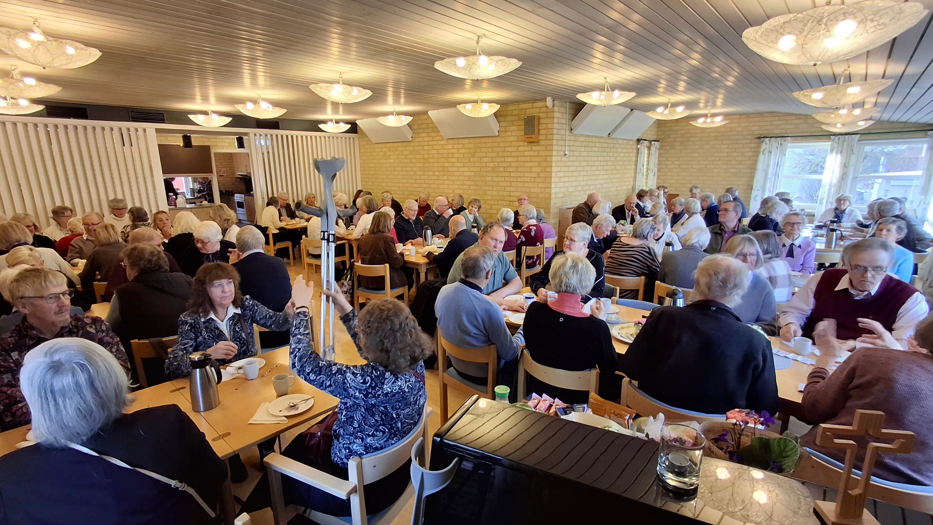 På onsdagen 19 februari 2025 hade SPF Seniorerna i Skara årsmöte i Centrumkyrkan. Det var 115 personer anmälda, så både kyrksalen som serveringsdelen var så gott som fullsatt.