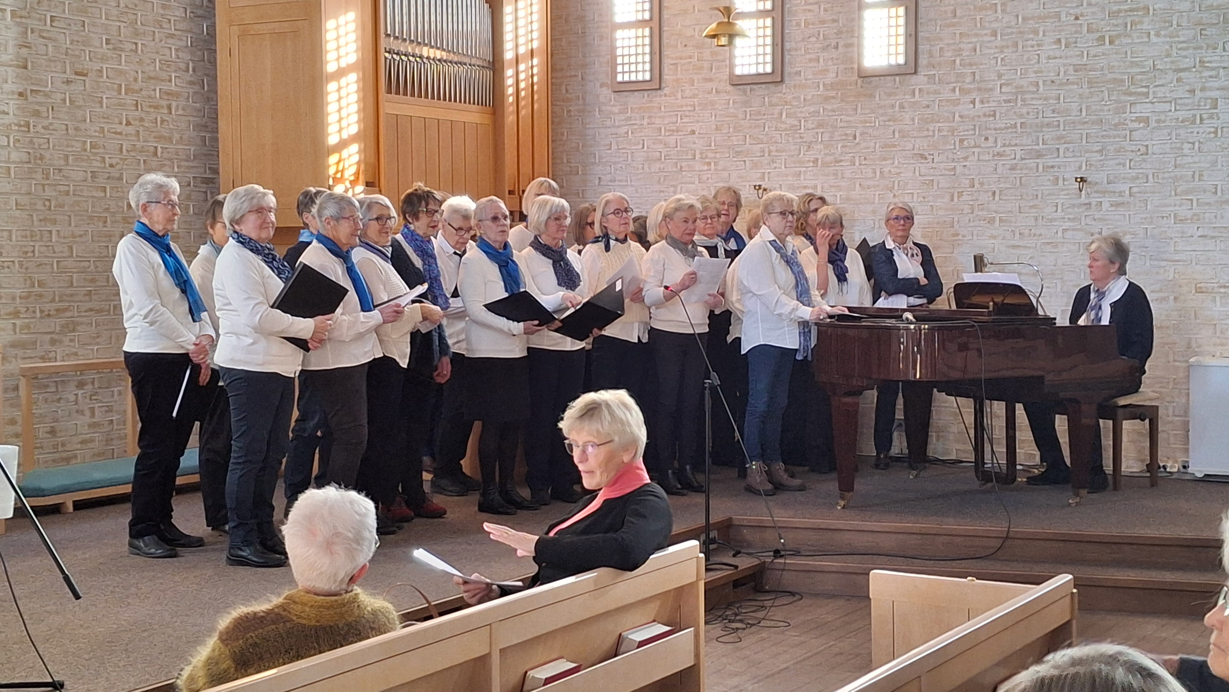 Kören avslutade mötet med två sånger av dels Robban Broberg och Py Bäckmans ”Stad i ljus”.