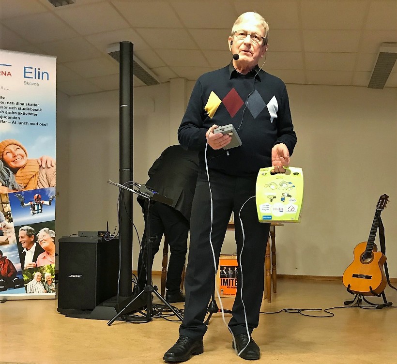 Och även pensionärer vill hjälpa medmänniskor i nöd. Det såg vi när SPF Elin i Skövde hade utbildning på den hjärtstartare som skänkts av Kärnsjukhusets Hjärtfond.