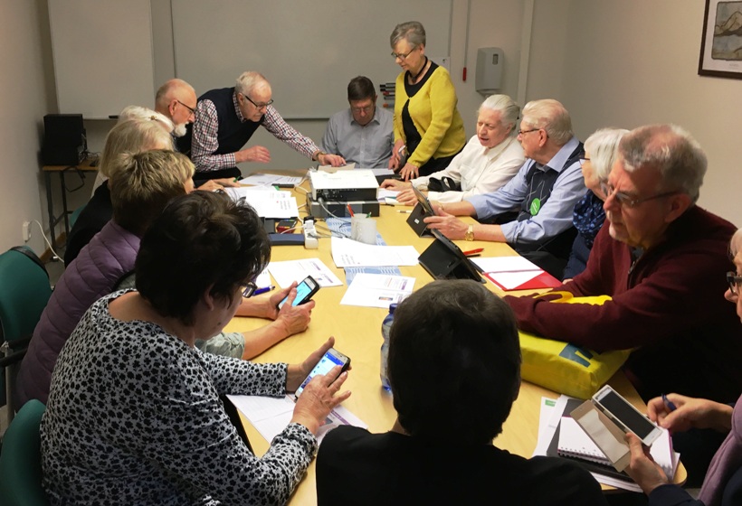 Nästan 50 SPF-are var på plats när IT-kaféet som SPF Seniorerna driver på fredagsförmiddagar tillsammans med Studieförbundet Vuxenskolan hade säsongspremiär. IT-kaféet ger SPF:s medlemmar möjlighet att få tips, råd och hjälp med sina datorer. Varje träff har ett tema, t ex IT-säkerhet, bildbehandling, operativsystemet Windows 10, att använda Facebook, e-posthantering. Det brukar också finnas plats för diskussion om aktuella IT-frågor och någon kan få hjälp med ett akut eget problem. I och med det alltmer utbredda användandet av surfplattor finns en särskild "klass" för iPad –användare, en grupp för surfplattor med operativsystemet Android och en som arbetar med PC. Ingen föranmälan behövs. Det är bara att komma med sin egen dator eller låna en av Vuxenskolans. Träffarna pågår varje fredag fram till den 23 mars.