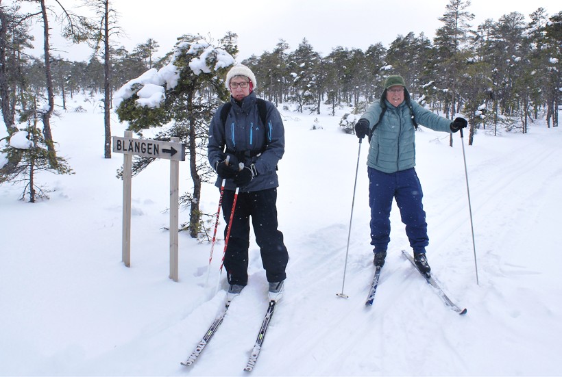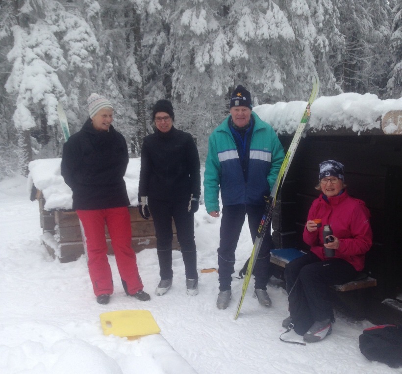 Äntligen kom snön så att Roland Gustavsson kunde erbjuda skidåkning i grupp. Fem glada skidåkare gav sig ut i fem-km-spåret, som var alldeles lagom långt för vissa, för kort för vissa.
