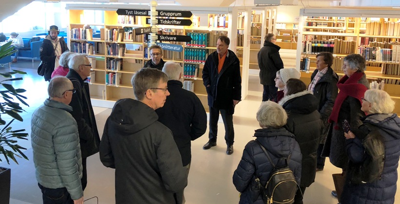 Ett tjugotal intresserade SPF-are togs emot av Erik Hällgren som gav oss en övergripande bild av högskolan och dess verksamhet. Vi fick bl a veta att där finns ca 7400 studenter och ca 450 anställda som studerar och/eller forskar inom informationsteknologi, företagande, biovetenskap mm. Särskilt uppskattat blev en praktisk demonstration av hur en 3D-skrivare arbetar och kan utnyttjas. Patrik Gustavsson från Institutionen för ingenjörsvetenskap visade och berättade om den. Besökarna imponerades också av skolans funktionella lokaler vid en rundvandring som avslutades i det ljusa, fina högskolebiblioteket.