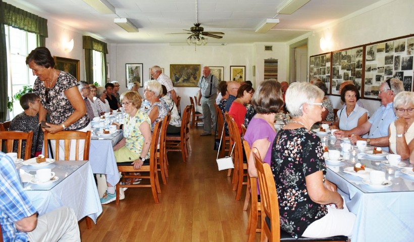 Det ansvariga matlaget klarade med glans av servicen runt borden och det blev en förbålt trevlig eftermiddag där också vår store kaffekokare och köksmedarbetare under alla Elins år, Lars Nilsson, avtackades med blommor och ett kilo Zoegas.