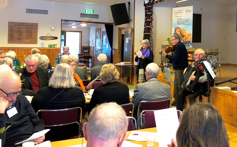 SPF Seniorerna Elins uppstart för året gick i humorns tecken. Efter att medlemmarna hade avnjutit en god lunch gick Anders Mårtensson, imitatör och sångare, upp på scenen. Han presenterade sig med ett citat, att han precis som politikerna under ett valår, samlar på röster. Mårtenssons imitationer av Lars Berghagen, Ernst-Hugo Järegård och Kalle Moreus var strålande, men det som tände publiken var när han växlade mellan olika politiker som Göran Persson, Carl Bildt, Annie Lööf med fl. Dessutom var hans texter fyndiga och träffande.