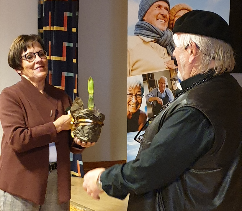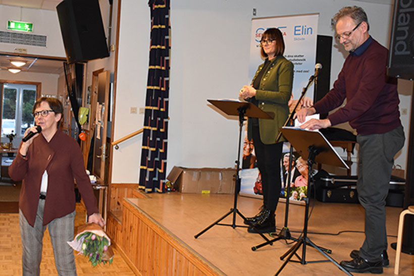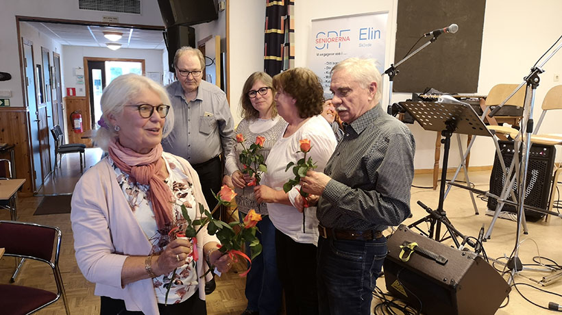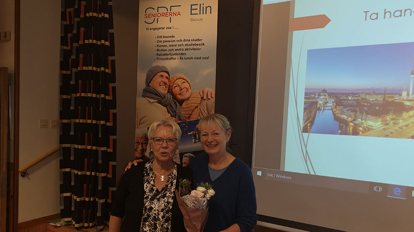 Hellgren berörde också att många pensionärer har en stressig tillvaro med olika plikter mot anhöriga och andra. Hon avslutade sin intressanta information med rådet "Ta hand om Dig själv", först då blir vi tillfreds med tillvaron. Hellgren avtackades med varma applåder och blommor.