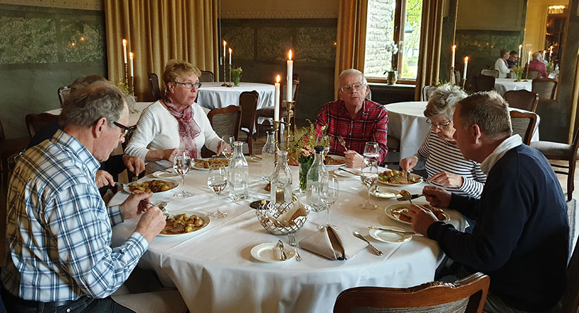 En god lunch serverades på Bjertorps slott och vi fick en kort genomgång av slottets historia av Karl-Ivar. Som vanligt trevlig samvaro vid borden.