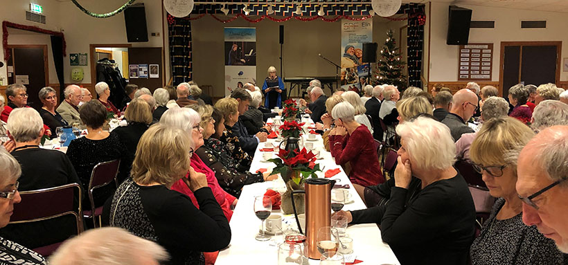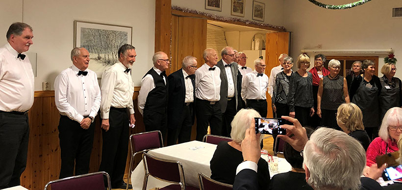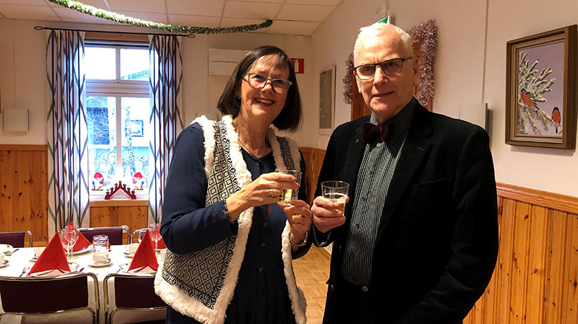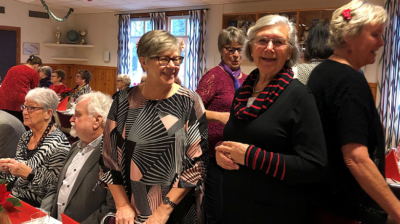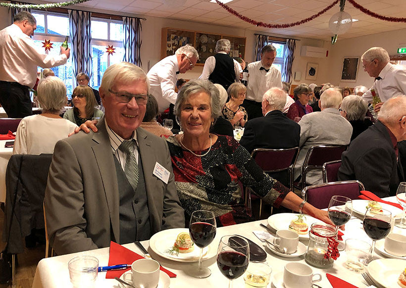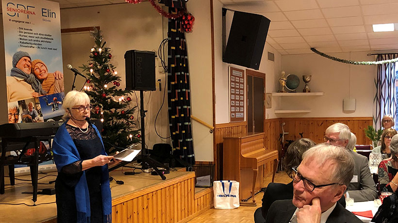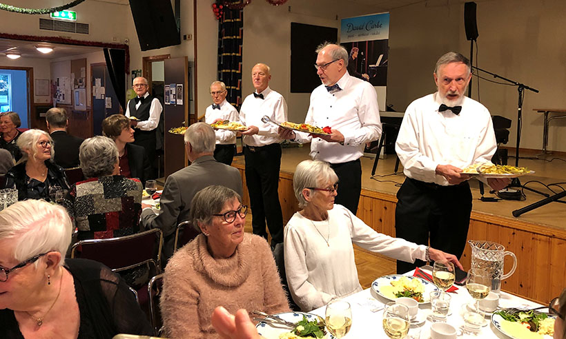 Decemberfesten hos SPF Seniorerna Elin blev årets "grand finale". Festklädda medlemmar möttes, minglade med lite bubbel under finstämd pianomusik. Därefter var det dags att sätta sig vid vackert dukade bord och bli serverade en superb trerätters meny av elva herrar klädda i vita skjortor, svarta byxor och svart fluga. De skötte sin uppgift galant.