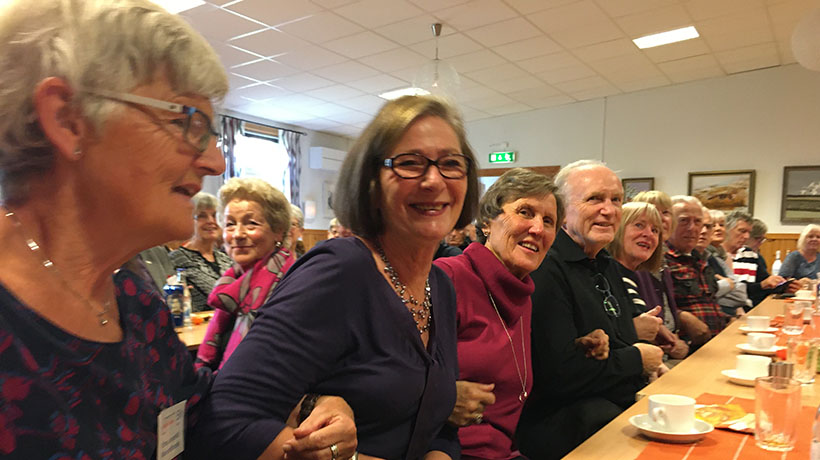 Vår egen Gun Magnusson-Särndahl kåserade på ett humoristiskt och tänkvärt sätt om historiska händelser som skett sen 1940-talet. Hon påpekade, trots att vi upplevt mycket, har vi tid kvar att njuta av kultur, kurser, goda vänner och god mat. Gun slutade med att citera Laleh – En stund på jorden, jag var där, en stund på jorden.