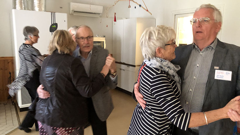 Av SPF:s policy framgår nyttan av motion och i den andan motionerade 10 – 15 dansanta par på de fria ytor som stod till förfogande.