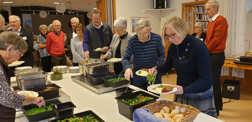 Ordföranden Bo Harder välkomnade alla och inledde med en kort information varefter dagens arrangörsansvarige Inga-Britt Lindahl presenterade dagens lunch, som bestod av Wallenbergare, potatismos, sallad och bröd. En måltid som smakade utomordentligt gott.