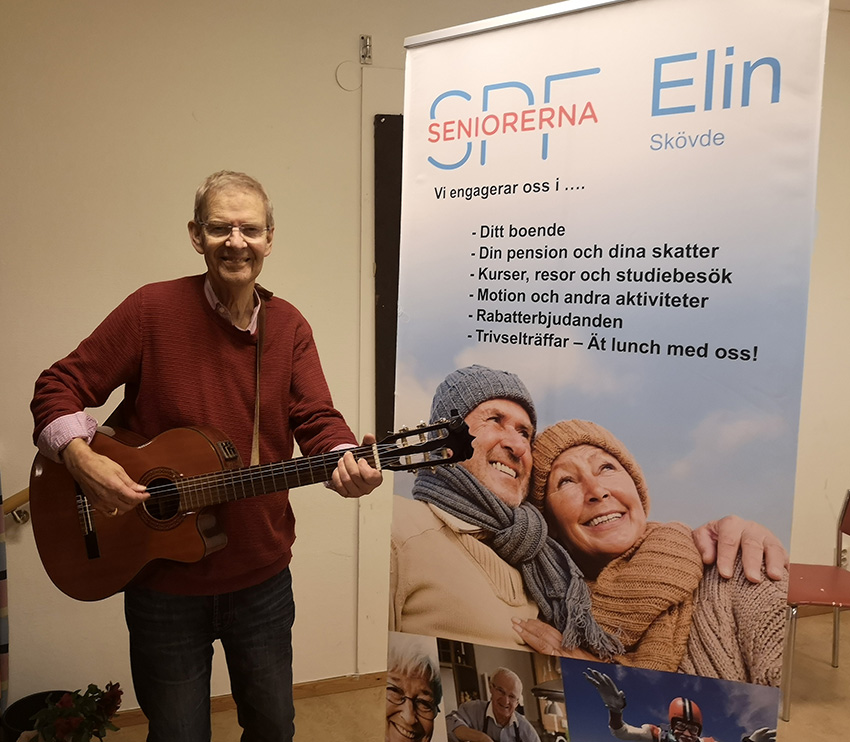Föreningens ordförande informerade om dagens betydelse och presenterade en underhållare som alla sedan tidigare tagit till sitt hjärta. Det är musikern Lars-Eric Frendberg från Trollhättan som har en bred repertoar med sångröst och gitarrspel utöver det vanliga.