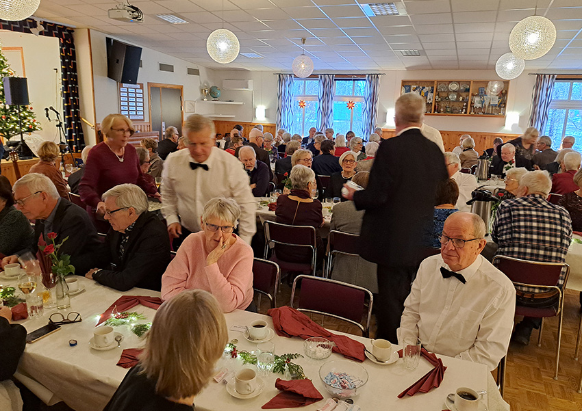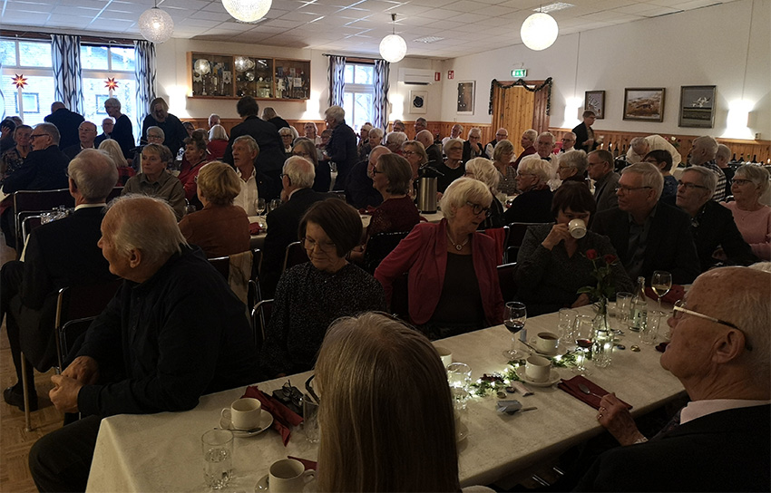 Jullunch i Bergs bygdegård på inbjudan av sektion NordBillingen onsdagen den 26 november . Ett 70-tal Elin-medlemmar rick in fin försmak av julens läckerheter under jullunchen . Det var två tallrikar, först en kall tallrik med sill och lax, skinka och annat gott , och sedan en varm talriksom bestod av en buffé med varma rätter som Jansson, köttbullar mm. Ett stort tack till alla som hjälpte till med att anordna en trevlig eftermiddag.