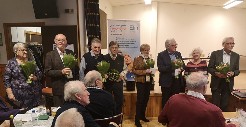 Vid årsmötets slut avtackades ledamöterna Bengt Anderson från styrelsen, Inger Frykler och Eva Brodén från aktivitetskommittén, Solveig Josefsson och Rune Kjernald från valberedningen, samt Sture Ljungqvist som sedan flera år tillbaka i tiden varit föreningens representant i KPR (kommunala pensionärsrådet).
