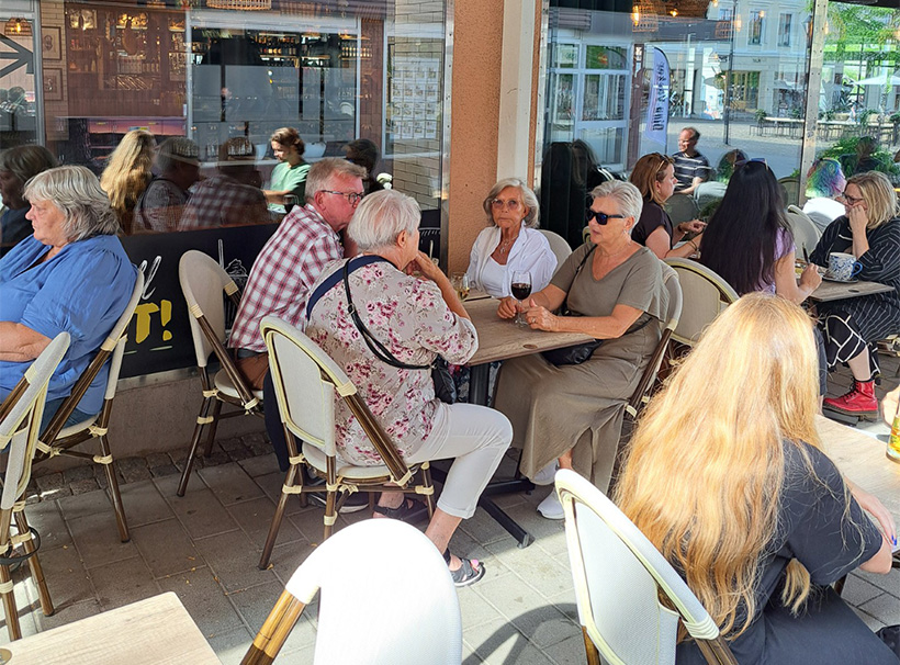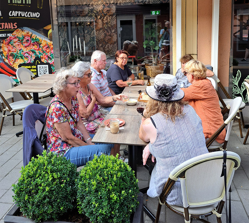 Vi var 12 medlemmar som träffades vid Livets Brunn, Hertig Johans torg, Skövde. Mocca Deli, en relativt nyöppnad restaurang i Skövde, var målet för vår träff.