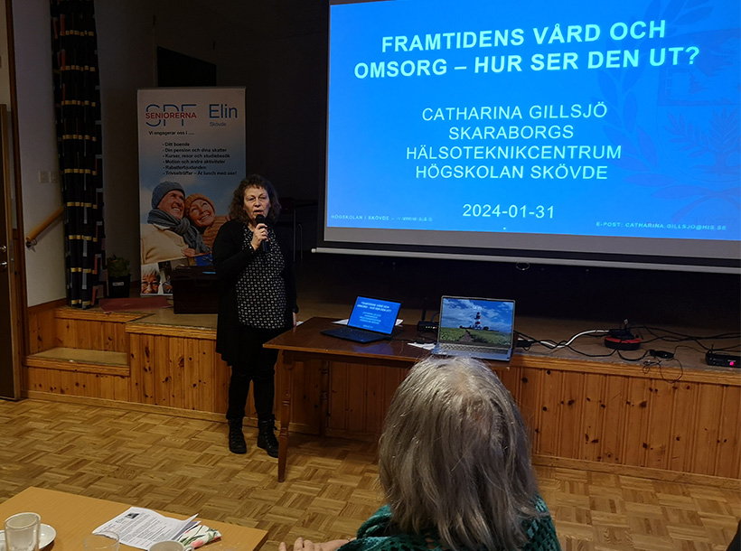 Nästa föreläsare var biträdande professor i omvårdnad Catharina Gillsjö från Högskolan i Skövde. Catharina Gillsjö är projektledare för SHC (Skaraborgs Hälsoteknikcentrum).