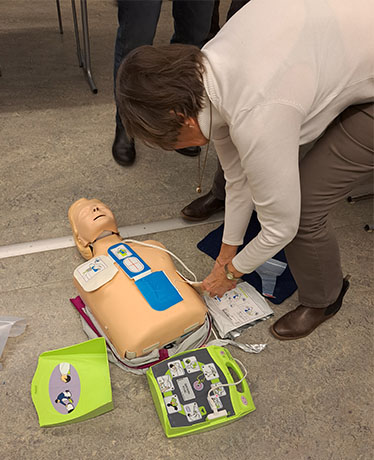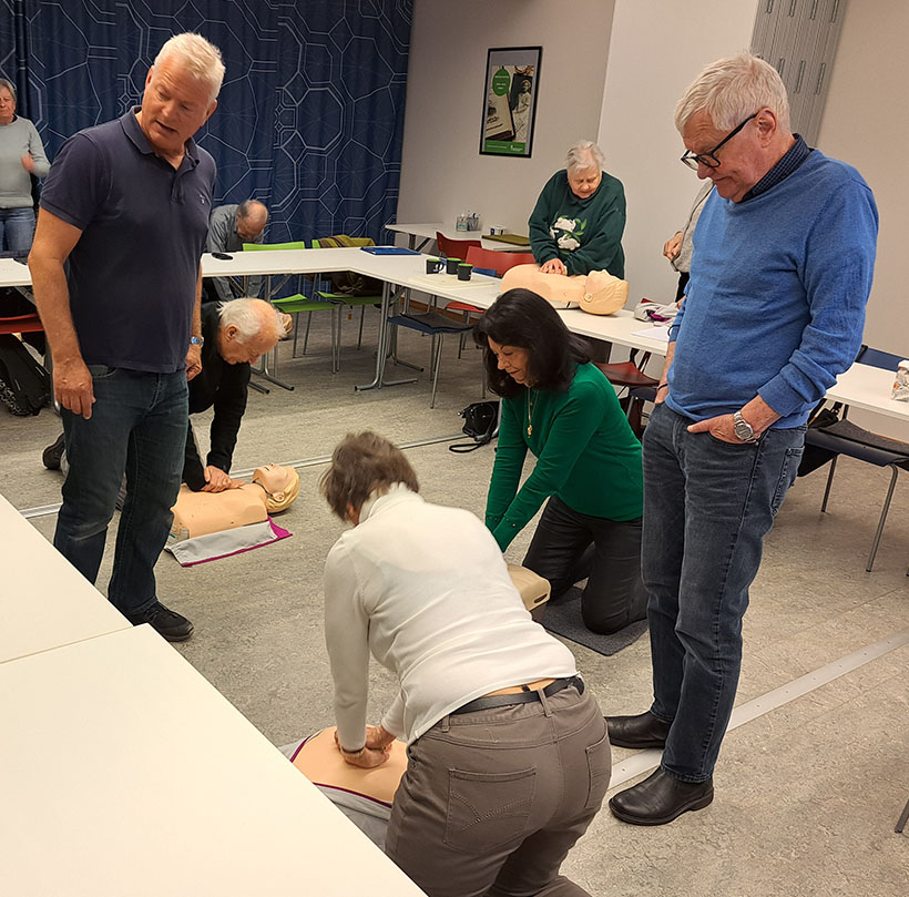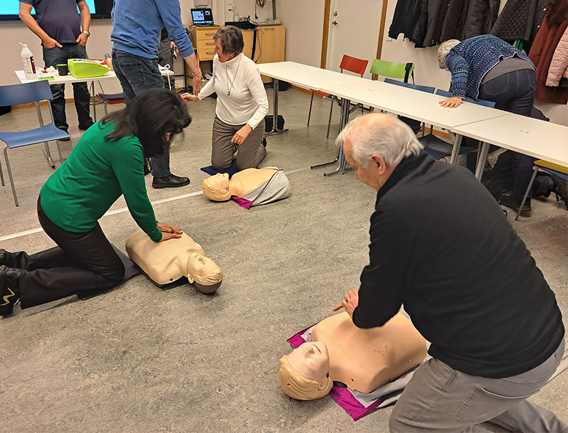 Den 19 mars genomfördes en kurs i HLR (hjärt-lungräddning) och hur man använder en hjärtstartare. Vid ett hjärtstopp pumpar hjärtat inte ut blodet i kroppen.