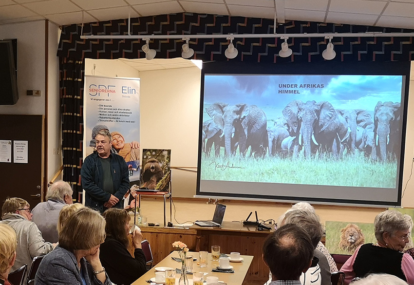 Efter en välsmakande lunch var det dags för dagens föreläsare Kent Andersson att berätta om sina upplevelser som naturfotograf i bl.a. Kenya och Uganda.