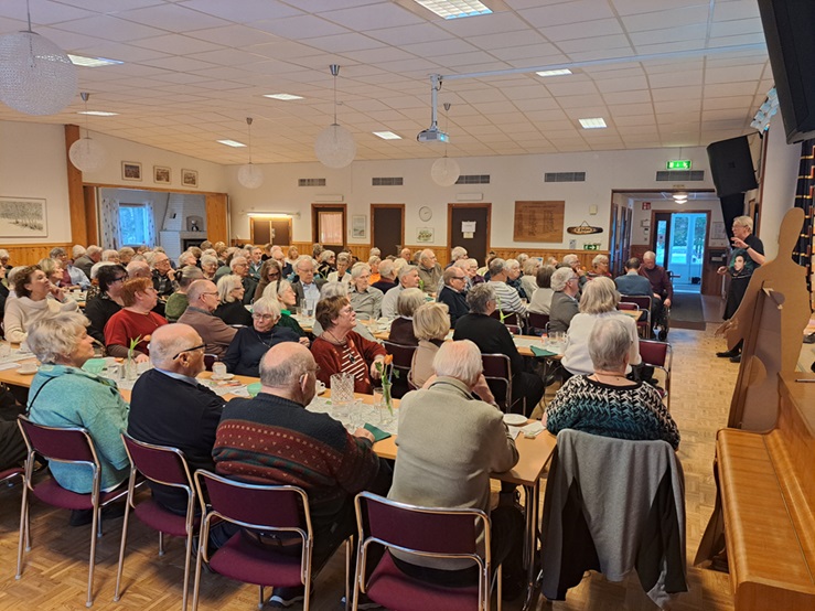 ”Stickan” belönades med varma applåder från en mycket nöjd publik och avtackades med en chokladkartong. Efter att dagens arbetslag tackats för den fina dukningen och serveringen avslutades mötet med Guje Schneiders, som alltid lika populära lotteri.
