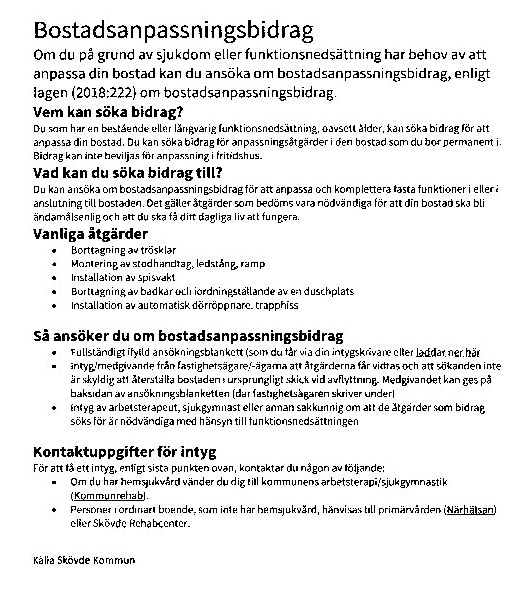 Om du på grund av sjukdom eller funktionsnedsättning har behov av att anpassa din bostad, kan du ansöka om bostadsanpassningsbidrag.