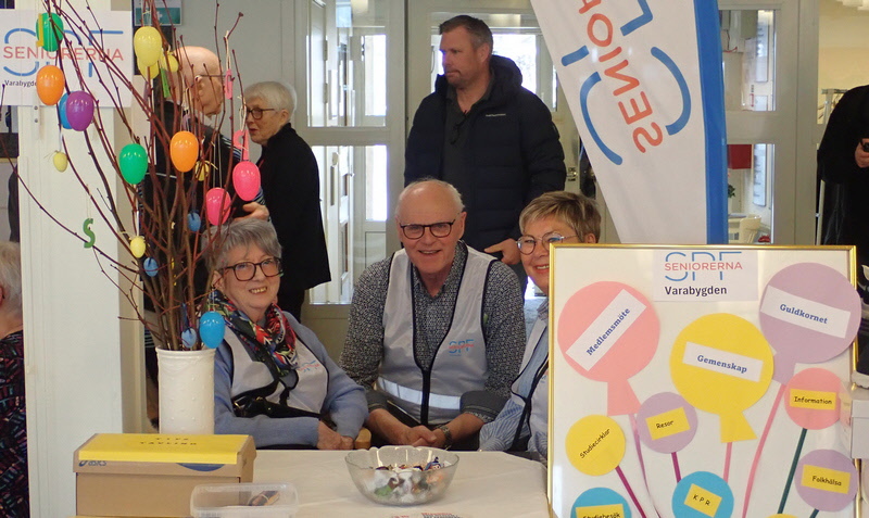 Vi marknadsförde SPF Seniorerna Varabygden där grundstenarna är medlemsmöte, gemenskap och mötesplats Guldkornet. Vi är nu 640 medlemmar och hoppas att vi blir flera efter dagens Seniormässa. För alla vill väl ha ett rikare seniorliv? Det försöker vi att erbjuda våra medlemmar.