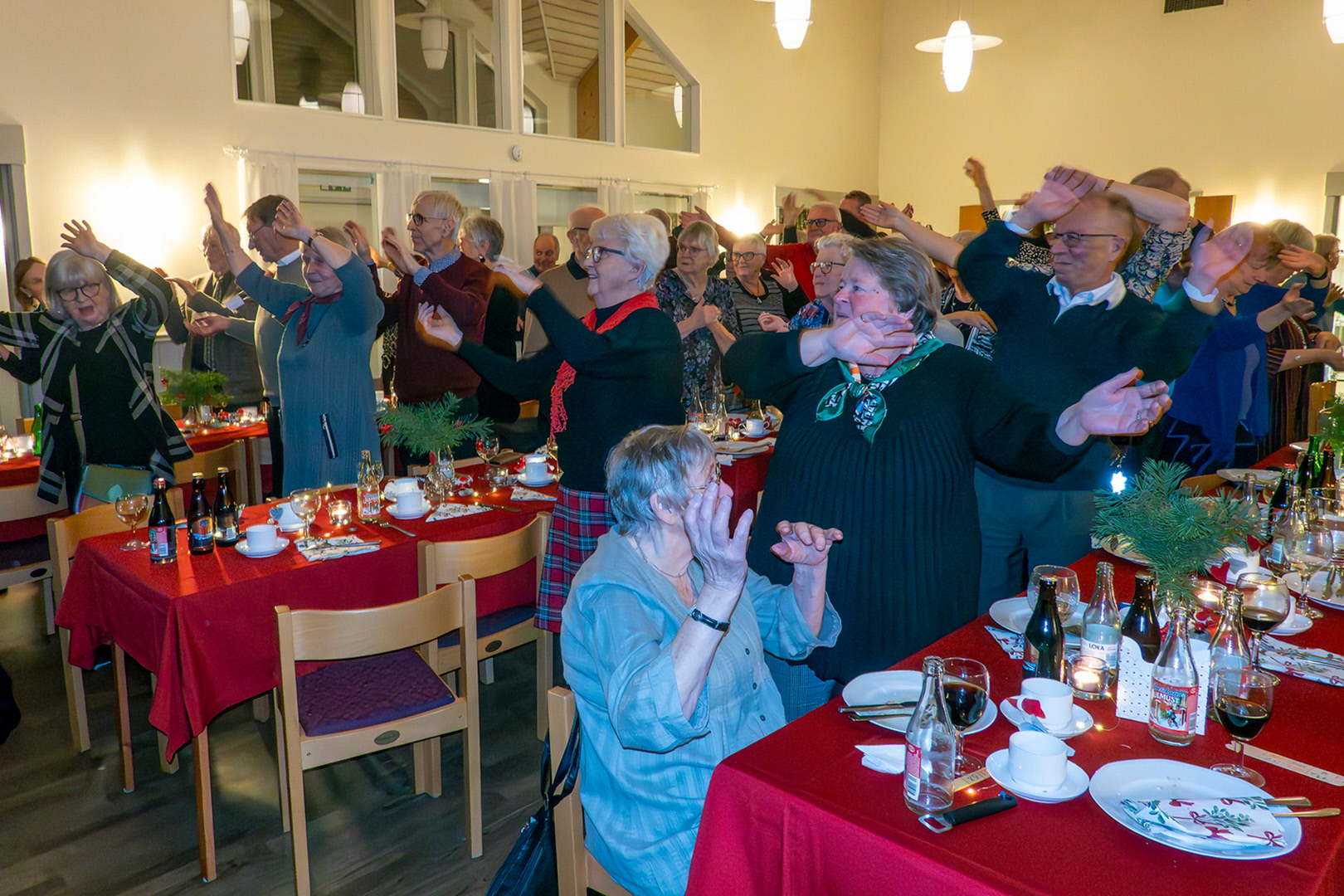 Under Biggos kåserande bjöds det på julbordets delikatesser, alltifrån sill, skinka och ägghalvor till Jansons frestelse, köttbullar och prinskorv.