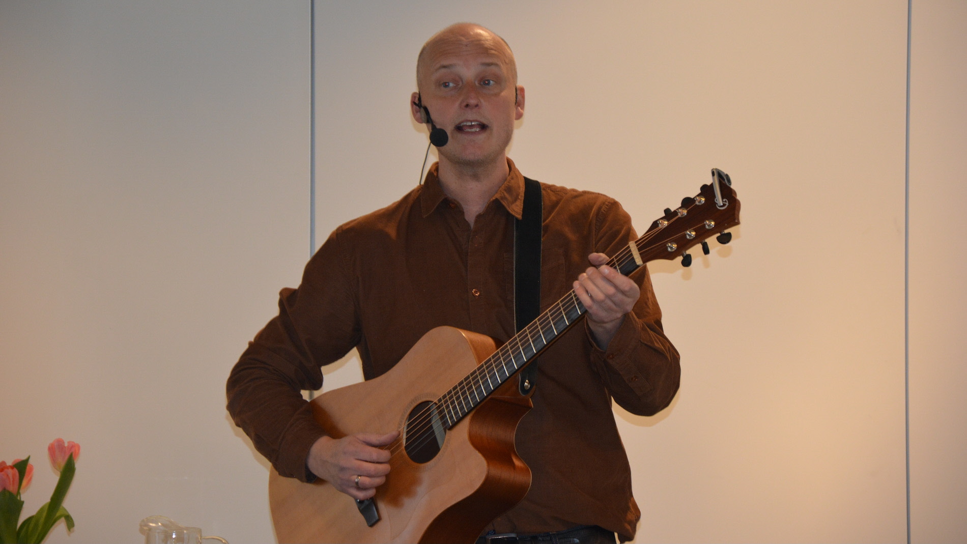 Skaras egen revykung Anderas Ljung var huvudpersonen på månadsträff den 6 april i Equmeniakyrkan Hökerum.