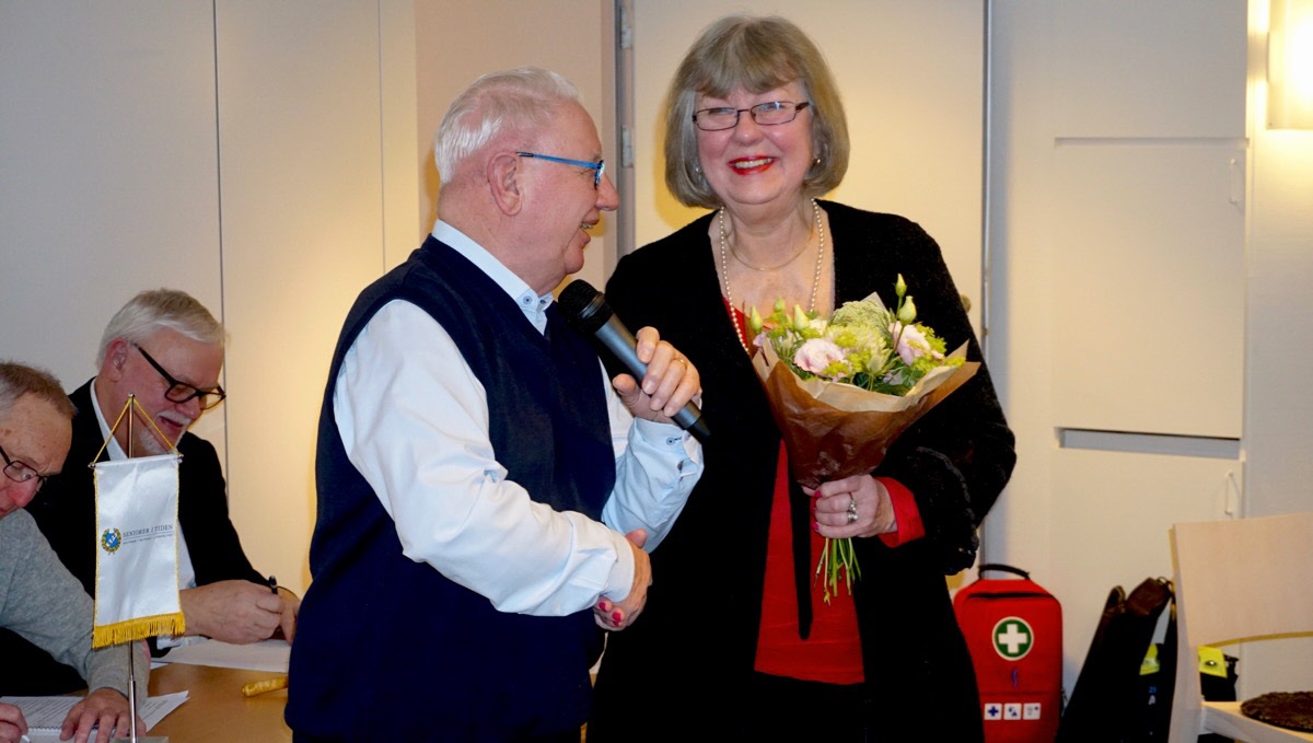 Anita Lund avtackades med blommor för sitt långvariga arbete i styrelsen bl.a. som sekreterare.