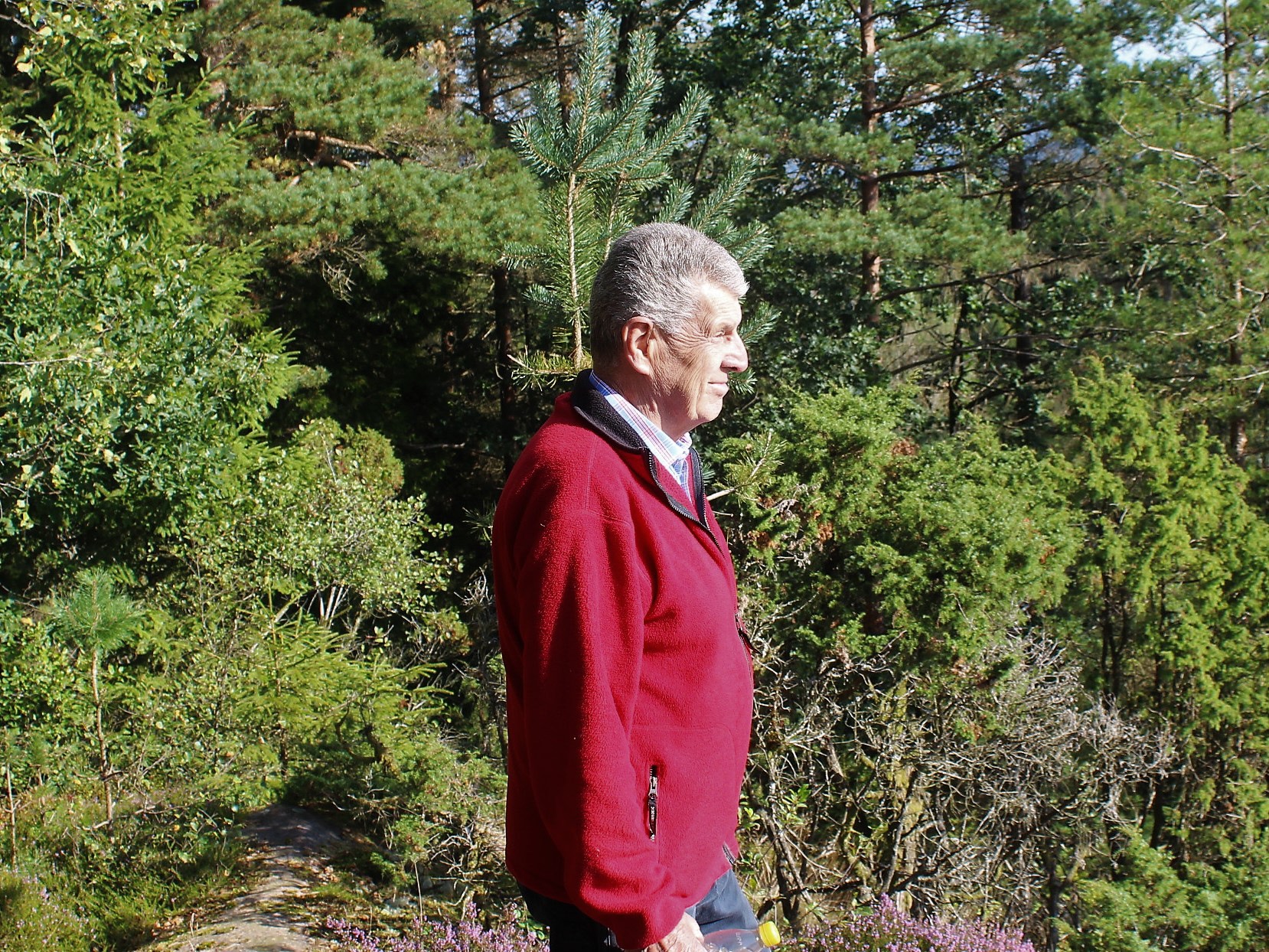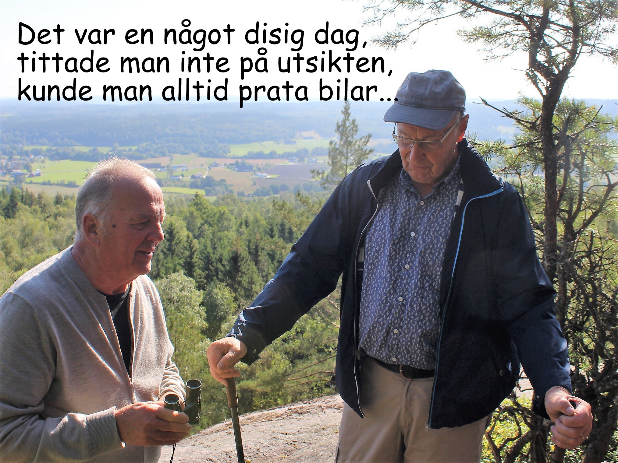 30 augusti vandrade vi en slinga vid Navåsen i Björketorp som ledde oss till platsen "Utsikten" som verkligen gjorde skäl för namnet. Det var en fantastiskt fin sensommardag, tyvärr något disig.