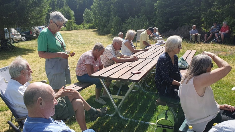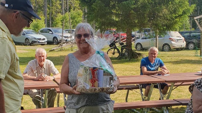 Våravslutningen var tänkt att vara en grillträff, men med tanke på torkan och det otroligt vackra sommarvädret så beslöts det snabbt att alla fick ta med sin egen matsäck medan föreningen bjöd på bullar, kaka och kaffe. Mellan de olika programpunkterna, såsom utdelning av priser för väl genomförd tipspromenad och motionstävling, så underhöll Åke Sjögren med många kända låtar på sitt dragspel. Ett par allsånger vågade vi oss också på.