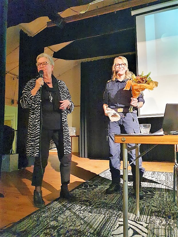 Lars-Ove Bäckänger från Programkommittén hälsade dagens föreläsare Annika Hallberg välkommen. Annika som nu är stationsbefäl vid polisen i Borås och bor i Länghem berättade och kåserade om sin 23 år som polis samt om säkerhet när det gäller brott mot äldre. Detta gjorde hon före och efter att vi serverades kaffe och en god tekaka med köttbullar, samt kaka.