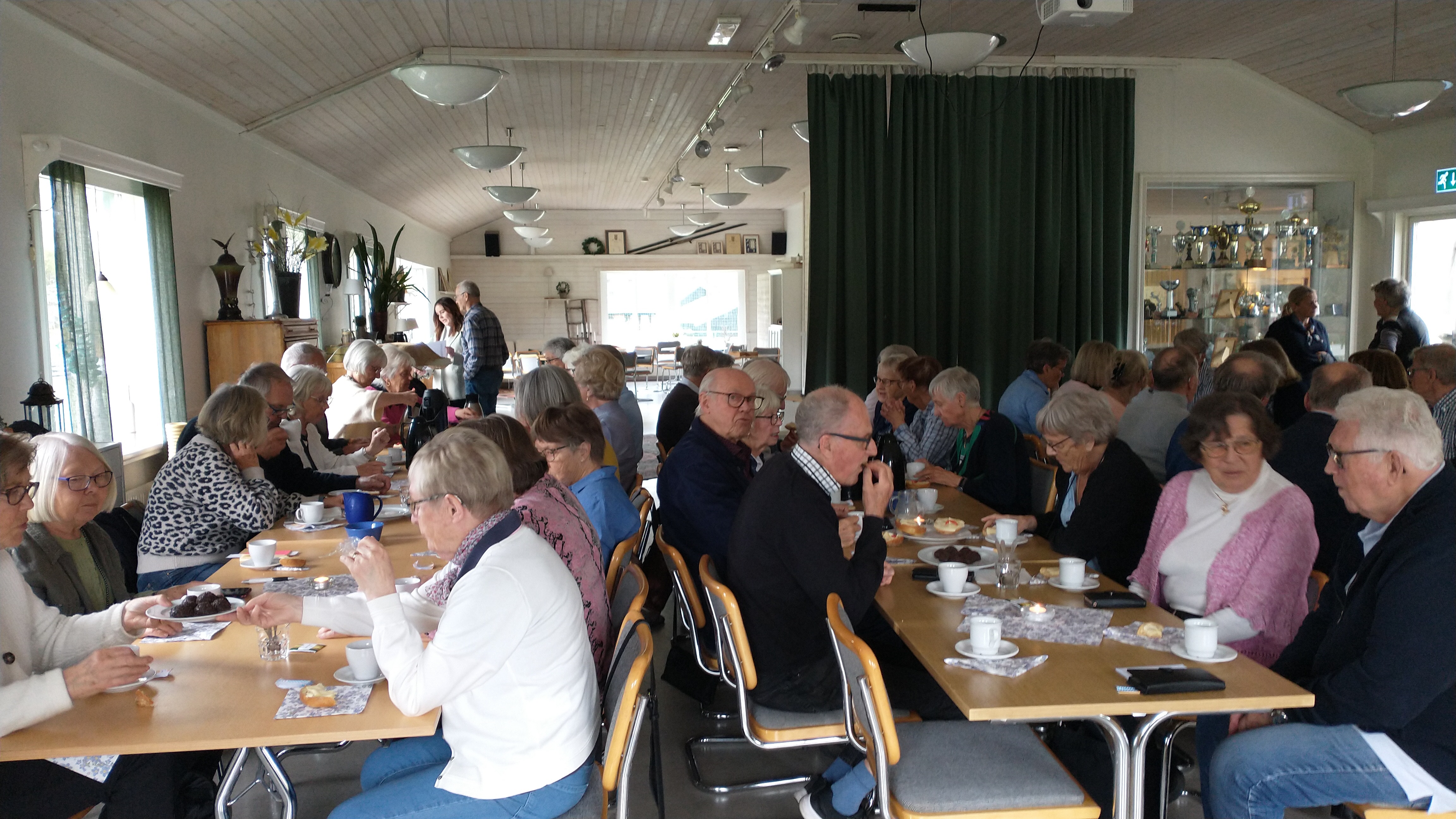 Efter den här allvarliga information var det dags för kaffe, fralla och en chokladkaka. Som vanligt hade deltagarna mycket att prata om och ljudnivån steg snabbt i lokalen när samtalen vid borden kunde flöda fritt.