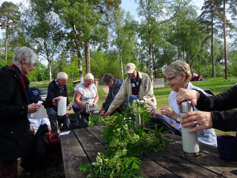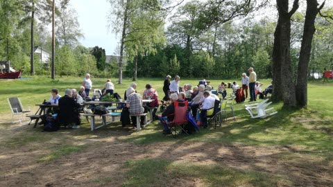 SPF-Seniorerna Tre Äss hade sin traditionella gökotta tisdagen den 21 maj vid Sjömarkens badplats. Vädret var varmt och sjön låg spegelblank men just när vi påbörjat den inledande poängpromenaden längs med strandstigarna "öppnades himlens portar" och vi fick snarast söka upp närmsta regnskydd.