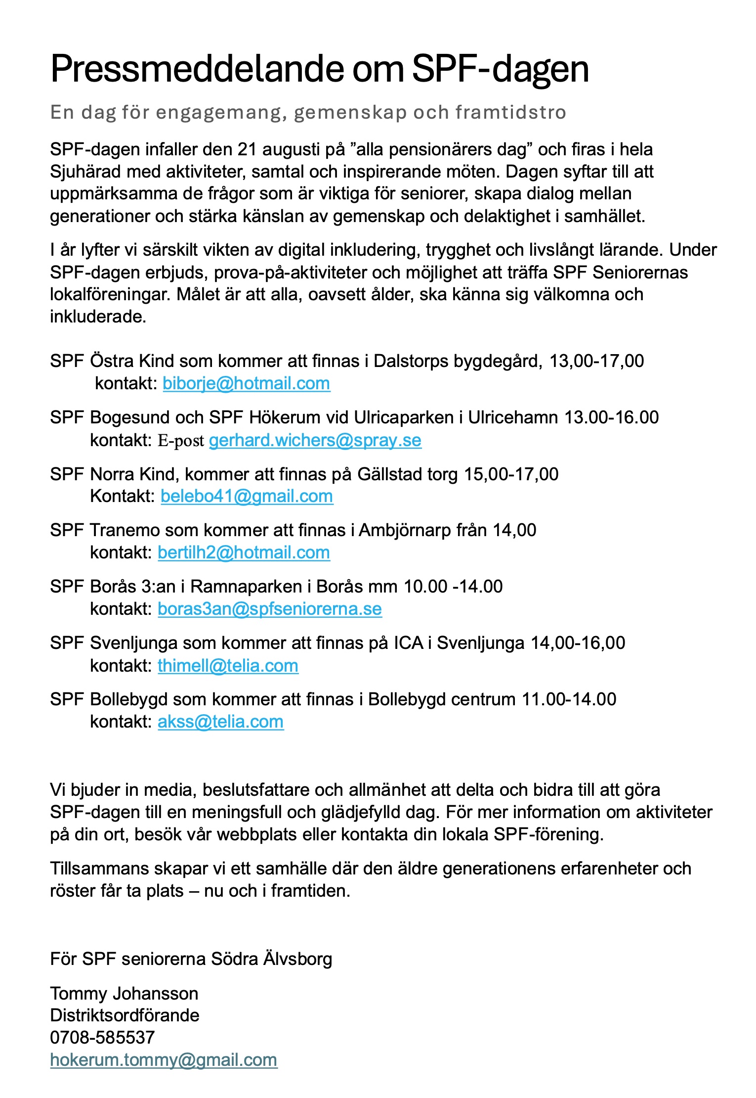 Pressmeddelande om SPF-dagen