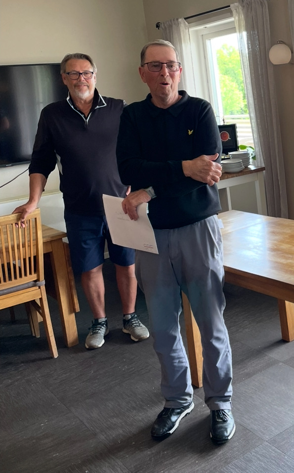 Vi blev till slut 40 deltagare, trots några sena avbokningar. Ett stort tack till Lars-Arne och hans fru Ann-May, som med sin husbil övernattade på plats och hjälpte till med att gå igenom prisbordet. Det var viktigt att allt följde Svenska Golfförbundets stadgar – och det gjorde det!