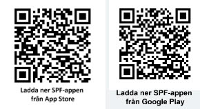Här laddar du ner SPF-Appen med QR-kod! Välj App Store för Iphone och Google Play för Android (Samsung, Sony, Doro, m.fl)