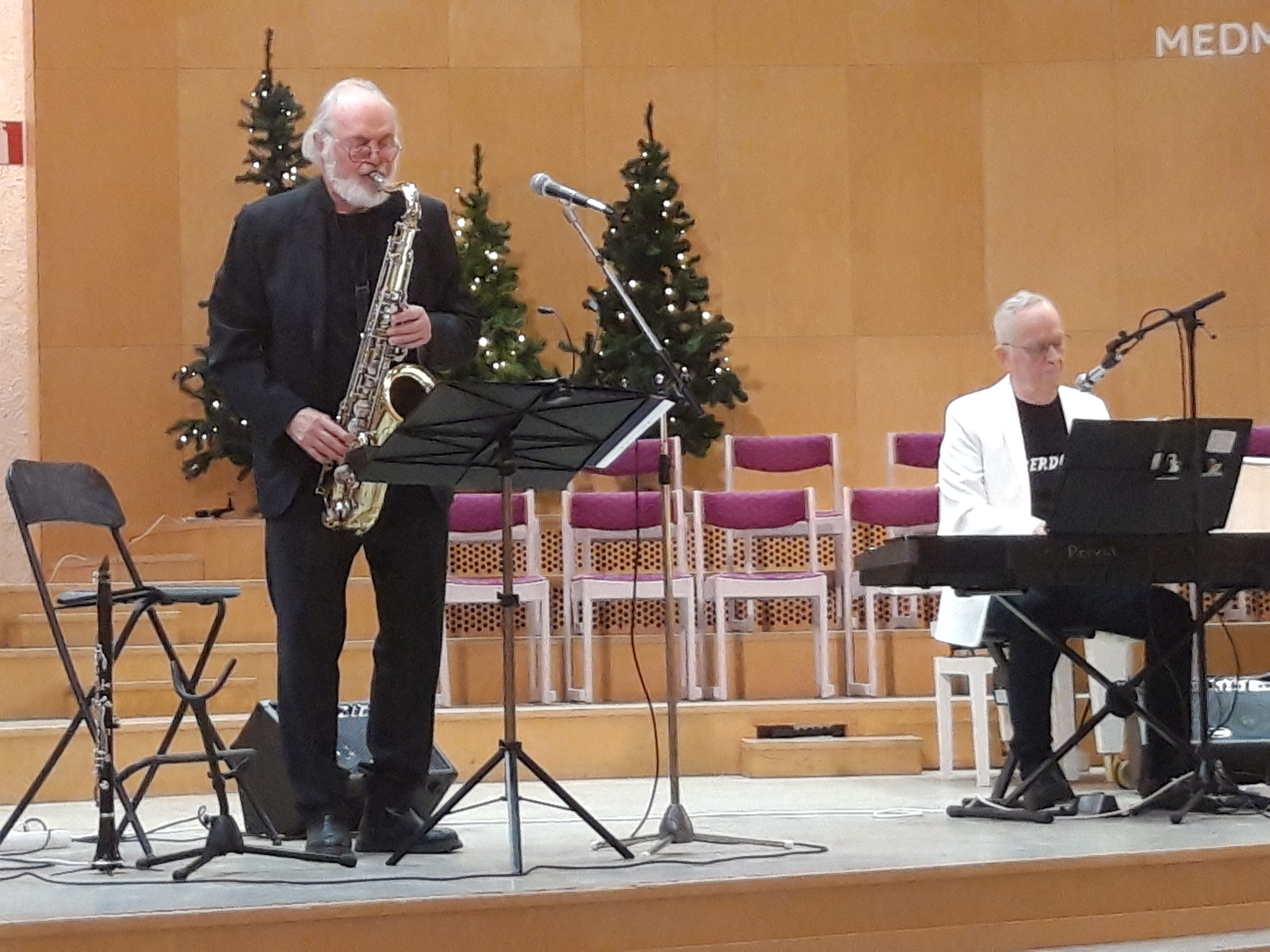 Årets sista Medlemsträff gick av stapeln 5 dec i Pingstkyrkan med en konsert av Leif Linnskog och Gunnar Sandevärn. Dessa duktiga och rutinerade musiker bjöd oss på ett varierat program. Vi fick bl.a. höra jazziga toner, evergreens, julsånger och avslutningsvis härliga Gabriellas sång. "Superduon" gör verkligen skäl för sitt namn.