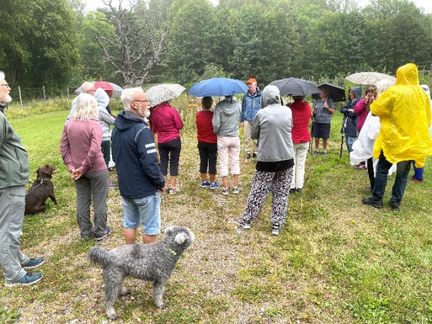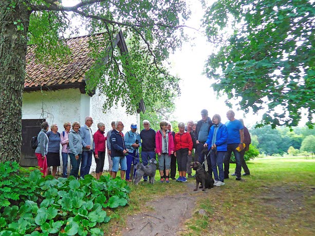 Promenadgänget rundade Konstnärsstugan. Då 22 Frilufsare och två hundar. Senare tillkom några Frilufsare. Foto: Leif Korsman
